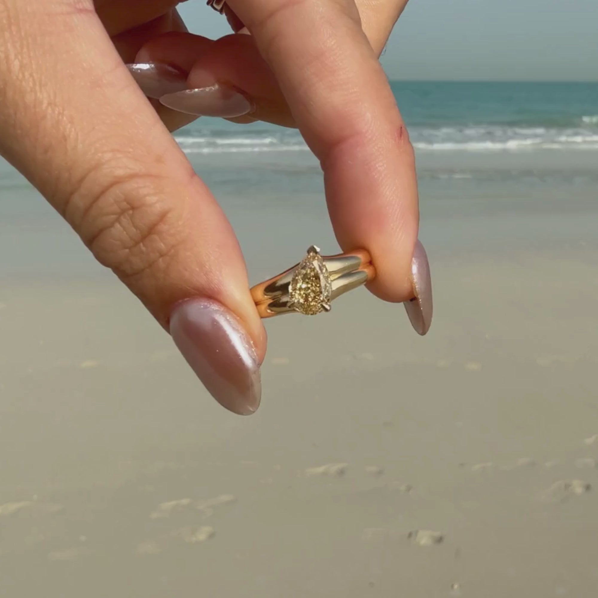 Set with a 1ct buttery yellow pear-shaped diamond, chosen for its warmth, glow, and unmistakable presence, because some people don’t just light up a room, they are the light.